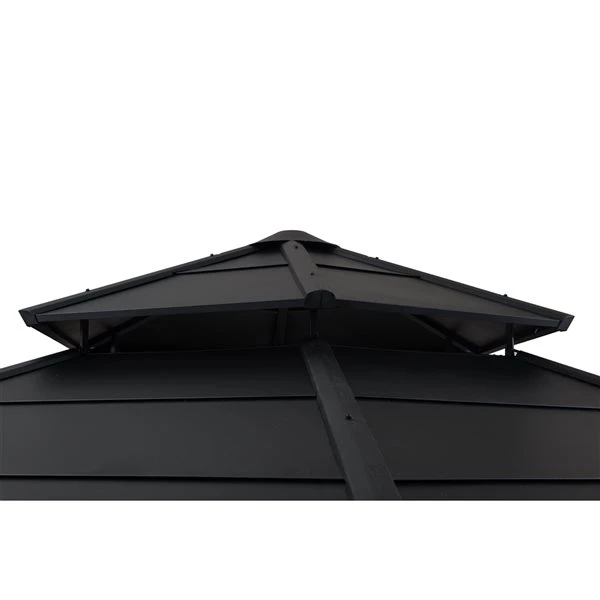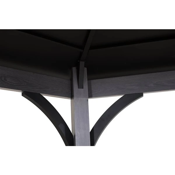 Améliorez le style et l’élégance de votre cour arrière. Vous aimez recevoir? Alors vous devez ramener chez vous ce superbe abri de jardin de Sunjoy.Revêtement thermolaqué noir résistant aux intempéries sur un toit en aluminium antirouilleStructure robuste en aluminium et en acier galvanisé résistant à la rouilleStructure aspect bois naturel avec crochet pour suspendre de l’éclairagePoids du produit de 356 lbPoteau extérieur au poteau opposé 13,5 pieds et dégagement du sol à la structure 6,8 piedsDimensions du poteau : 4,6 po x 4,6 poRésistance au vent : 31,1 mi/h