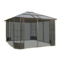 Rehaussez votre espace extérieur grâce à un abri de jardin quatre saisons. L’abri Savino est parfait pour ceux qui apprécient un environnement bien ombragé lors des chaudes journées ou la sensation d’une brise chaude durant les soirées d’été. Cet abri de jardin comporte une structure en aluminium de haute qualité et comprend une moustiquaire en nylon pour garder les insectes à l’écart. Son toit en panneaux de polycarbonate ondulé résiste aux intempéries, ce qui rend cet abri de jardin parfait pour toutes les saisons.Revêtement protecteur : Le revêtement thermolaqué Interpon d’AkzoNobel offre une résistance maximale aux égratignures et à la corrosionConstruction renforcée : cadre en aluminium extrudé pour une durabilité accrueProtection solaire optimale : les panneaux de toit en polycarbonate bloquent les rayons UV nocifs tout en laissant passer la lumière naturelleProtection polyvalente : le système innovant à double rail permet l’utilisation simultanée des moustiquaires et des rideauxAntirouille : la structure en aluminium est antirouille, ce qui la rend durable et facile d’entretienInstructions illustrées : assemblage facile grâce à des images détaillées illustrant les instructions étape par étapeLutte contre les parasites : le filet en nylon empêche les moustiques et autres insectes de pénétrer dans l’abri