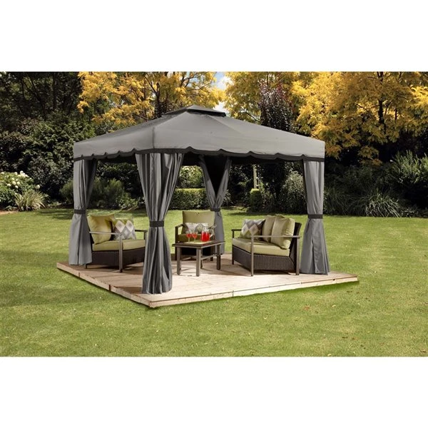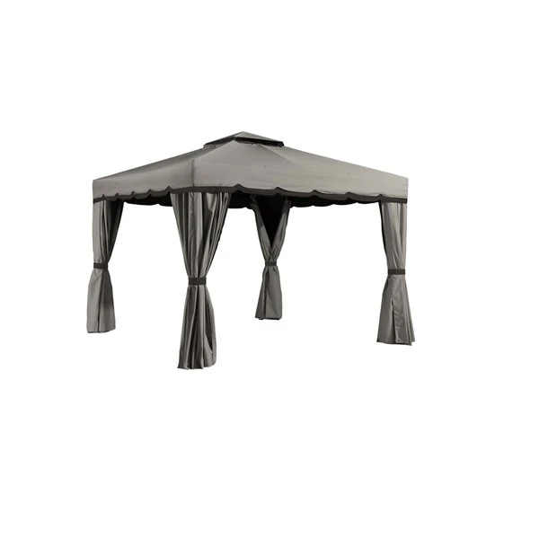 Rehaussez le décor de votre espace extérieur avec l’abri-soleil Roma de Sojag(MD). Doté d’un toit en polyester filé, il est conçu pour vos protéger du soleil, afin que vous puissiez profiter pleinement de l’extérieur durant la saison estivale. Il est conçu pour être facile à installer et sa structure en aluminium légère et robuste, revêtue d’une peinture par pulvérisation le rendra durable durant des années à venir. Le Roma est fait d’une structure élégante, avec rideaux en polyester de grande qualité. La moustiquaire offre une ventilation appropriée et procure une protection des moustiques durant toute la saison.Structure d’aluminium gris foncé de haute qualitéToit composé de polyester gris pâle et gris foncéMoustiquaire et rideaux d’intimité gris inclusSystème de pôle double pour suspendre la moustiquaire et les rideauxAssemblage facileToutes les pièces (toit, moustiquaire et rideaux) sauf la structure doivent être retirées durant la saison hivernalePièces de remplacement disponibles