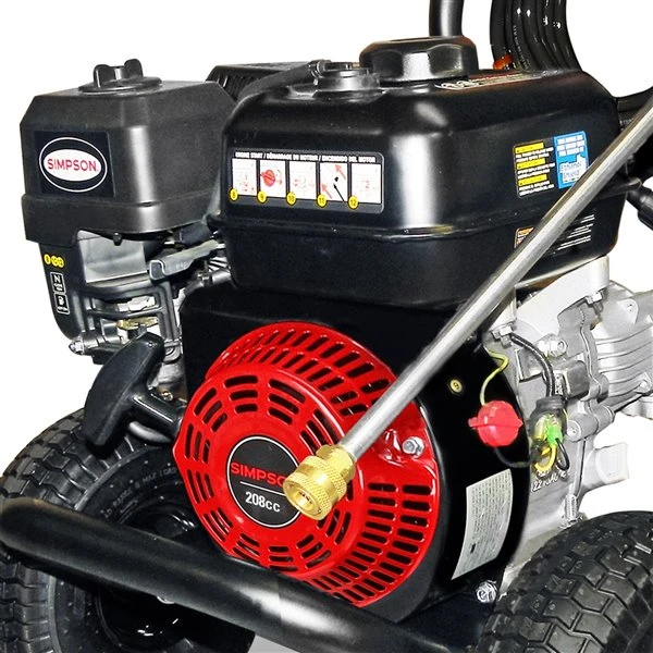 Nettoyez grand avec La Nettoyer Machine propre de Simpson! Ce nettoyeur haute pression à gaz compact entièrement assemblé est léger, facile à ranger et offre une expérience de lavage sous pression puissante. Il suffit de configurer et vous êtes prêt à nettoyer. La Nettoyer Machine est équipée d’un moteur Simpson OHV de 159cc associé à une pompe à cames axiale OEM Technologies. Le cadre en acier du nettoyeur haute pression entièrement assemblé est enduit de poudre pour résister à la corrosion et dispose d’une poignée rabattable qui permet un stockage rapide et pratique, occupant un espace de stockage minimal dans des espaces restreints. Des roues qui ne se rouleront jamais à plat offrent un avantage supplémentaire pour la maniabilité. Ce nettoyeur haute pression à gaz compact permettra un accès facile dans les zones difficiles à nettoyer.Moteur Simpson OHV à grand recul pour un démarrage facilePompe à came axiale fiable et sans entretien OEM Technologies avec décharge thermique5/16 po x 25 pi le tuyau haute pression est non marquant, flexible et résistant à l’abrasionStructure en acier avec finition enduite de poudre pour une durabilité et une résistance à la corrosionRoues pneumatiques de 10 po de qualité supérieure pour une maniabilité aisée sur divers terrains4 embouts de buse à connexion rapide: 0 degrés, 15 degrés, 40 degrés, et savon à utiliser pour une variété d’applications de nettoyage