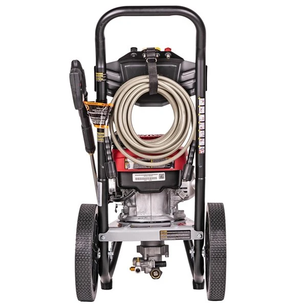 La série Simpson Mega Shot est parfaite pour les «bricoleurs» à la recherche de performances maximales avec un investissement minimal. Simple à utiliser et idéal pour nettoyer les terrasses, les patios, les meubles d’extérieur, le revêtement de maison et préparer les extérieurs de la maison pour la peinture. Son design compact est léger et suffisamment petit pour être facilement transporté par une seule personne. Équipé de moteurs premium Honda, Kohler ou Simpson OHV construits avec des composants de haute qualité, conçus pour des performances optimales et réputés pour être faciles à démarrer.Honda GCV160 est facile à démarrer et à utiliserPompe à came axiale fiable et sans entretien OEM Technologies avec décharge thermiqueLe tuyau haute pression MorFlex de 1/4 po x 25 pi est résistant aux rayures, flexible et résistant à l’abrasionStructure en acier avec finition enduite de poudre pour une durabilité et une résistance à la corrosionRoues de 12 po jamais à plat pour faciliter la maniabilité sur divers terrains4 embouts de buse à connexion rapide: 0 degrés, 15 degrés, 40 degrés, et savon à utiliser pour une variété d’applications de nettoyage
