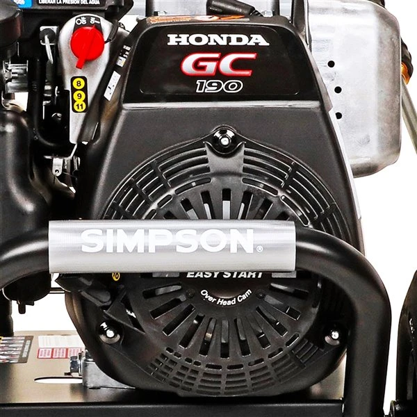 La série Simpson Mega Shot est parfaite pour les «bricoleurs» à la recherche de performances maximales avec un investissement minimal. Simple à utiliser et idéal pour nettoyer les terrasses, les patios, les meubles d’extérieur, le revêtement de maison et préparer les extérieurs de la maison pour la peinture. Son design compact est léger et suffisamment petit pour être facilement transporté par une seule personne. Équipé de moteurs premium Honda, Kohler ou Simpson OHV construits avec des composants de haute qualité, conçus pour des performances optimales et réputés pour être faciles à démarrer.Honda GC190 est facile à démarrer et à utiliserPompe à came axiale fiable et sans entretien OEM Technologies avec décharge thermiqueLe tuyau haute pression MorFlex de 1/4 po x 25 pi est résistant aux rayures, flexible et résistant à l’abrasionStructure en acier soudé avec finition enduite de poudre pour une durabilité et une résistance à la corrosionPneus haut de gamme de 10 po pour une maniabilité aisée sur divers terrains5 embouts de buse à connexion rapide: 0 degrés, 15 degrés, 25 degrés, 40 degrés,et du savon à utiliser pour une variété d’applications de nettoyage