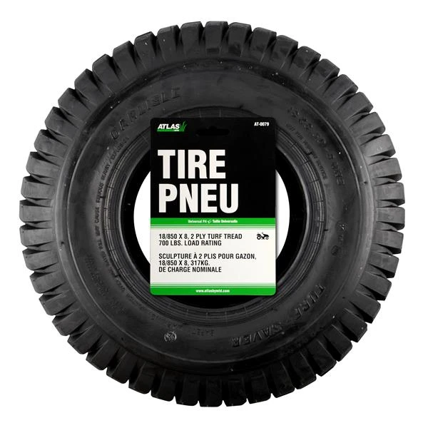 Ce pneu de rechange universel de 18 po x 8,5 – 8 pour tracteur de pelouse est doté d’une bande de rouleau à 2 plis pour gazon. Ce pneu convient à la plupart des tracteurs de pelouse et de jardin et a une capacité de charge de 600 lb (272 kg).Pneu de rechange de 18 x 8,50 – 8 pour tracteurs de pelousePneu à deux plisCapacité de charge de 700 lbUsage universel
