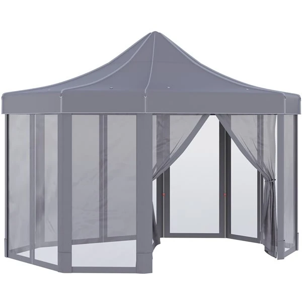 Auvent Ajustable Octogonal Gris De 9,8 Pi X 13,1 Pi Par Outsunny Avec 4 Parois Latérales Amovibles En Maille