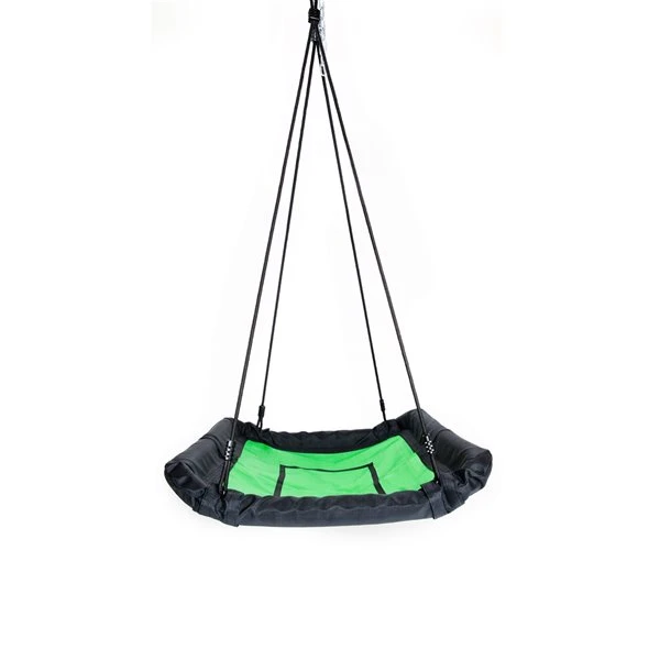 Envolez-vous dans les airs ou allongez-vous sur le dos pour lire un livre dans cette balançoire qui offre plusieurs façons de vous amuser à l’extérieur. Accrochez les cordes côte à côte sur des suspensions de balançoire, ou accrochez les deux cordes au centre, sur un même support de balançoire, pour accentuer la rotation (ce produit ne tourne PAS à 360 degrés.)Installation polyvalenteLes longs côtés de la balançoire sont inclinés vers le haut, ce qui en fait un endroit confortable sur lequel s’appuyer, et constitue également un rebord sécuritaire permettant de retenir à l’intérieur de la balançoire les jeunes enfants.Taille – supporte jusqu’à 300 lb. Placez-y plusieurs enfants pour leur faire vivre une expérience grisante, ou utilisez-la vous-même de façon plus détendue.Fabriquée à partir d’un matériau testé contre les ultraviolets; ainsi, votre balançoire conserve sa couleur vive malgré les éléments. Cadre en acier coussiné pour plus de confort, assurant ainsi des heures de plaisir en tout confort.Installation simple – suivez simplement les instructions pour connecter le cadre partiellement préassemblé, puis fixez simplement les pinces à maillon rapide aux suspensions robustes de votre installation de jeu, et balancez-vous à cœur joie!
