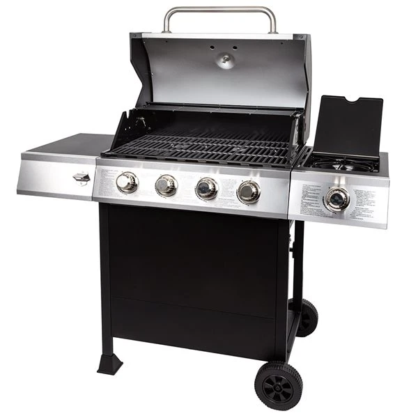 Combinant performance, durabilité et style, ce barbecue au propane à 4 brûleurs à chariot ouvert a tout ce dont vous avez besoin pour préparer de délicieux plats pour la famille et les amis.• 4 brûleurs en acier inoxydable de qualité commerciale de 12 000 BTU • Roulettes sur le côté droit pour un déplacement facile• Le couvercle comprend une grille de réchaud et un thermomètre intégré• Des grilles de cuisson de gros calibre couvrent les brûleurs principaux• Comprend un ouvre-bouteille Caractéristiques :• Type de carburant : propane liquide• Type d’allumage : électronique « pousser et tourner »• Nombre de brûleurs principaux : 4• Nombre de brûleurs latéraux : 1• BTU des brûleurs principaux : 48 000• BTU du brûleur latéral : 12 000• Surface de cuisson principale : 461 po²• Surface du brûleur latéral : 121 po²• Surface de la grille de réchaud : 135 po²• Surface de cuisson totale : 596 po²• Format maximal de la bonbonne de propane : 20 lb (non incluse)