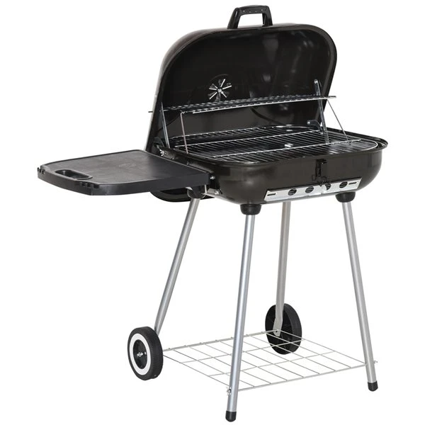 Ce barbecue au charbon de bois de haute qualité Outsunny est le meilleur choix pour vos rassemblements dans le jardin, sur la terrasse ou en camping. Grâce à un design multifonctionnel et polyvalent, il peut satisfaire tous vos besoins. Il est équipé d’une grille de cuisson et d’une grille chauffante surélevée pour y mettre les aliments cuits. Le poêle à charbon a une hauteur ergonomique. Le barbecue dispose également d’une étagère pliante pour préparer les aliments. De plus, il possède des étagères de rangement pratiques pour que vous puissiez avoir de la nourriture, de la vaisselle et des accessoires à portée de main.Gril portatif, solide et durable avec corps et couvercle en porcelaine émailléeCouvercle verrouillable pour un contrôle flexible de la chaleurLes grilles de cuisson chromées transfèrent mieux la chaleur et offrent une grande surface de cuissonLa tablette pliable économise de l’espace lorsqu’elle n’est pas utiliséeDimensions totales : 37 3/4 po x 23 1/2 po x 32 3/4 poLa poignée évite les brûlures et est facile à ouvrir et à fermerIdéal pour le camping, la pêche, les pique-niques, la terrasse et le jardinRésiste à des températures allant jusqu’à 600 °C