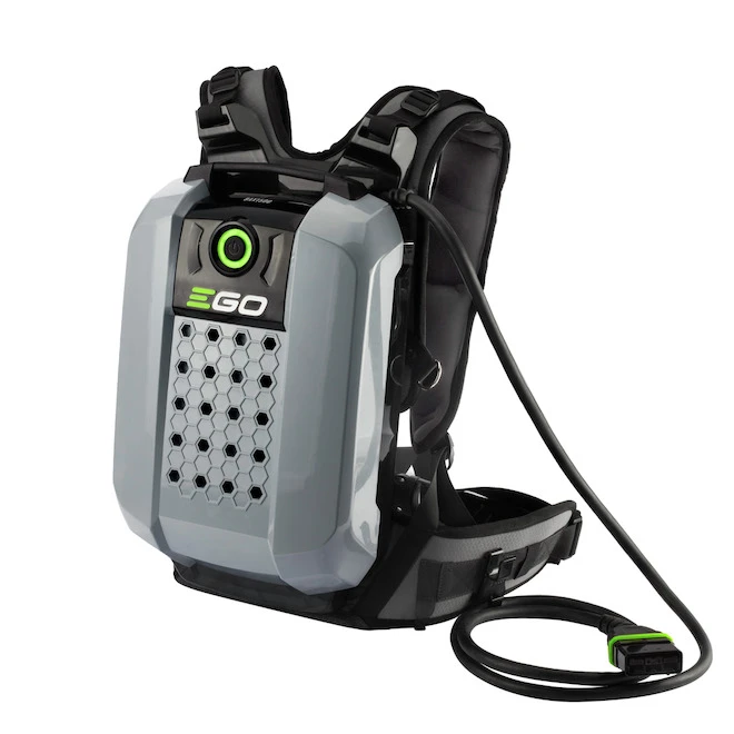 Lorsqu’il s’agit de travaux exigeants, la batterie dorsale commerciale EGO POWER+ est à la hauteur. Grâce à sa puissance et à sa durée de fonctionnement de 3,5 heures, elle offre la même puissance que 80 % des produits à gaz actuellement utilisés. Sans le bruit, les fumées et les vibrations, bien sûr. Nous avons testé cette batterie extrêmement résistante et durable dans toutes les conditions, au point qu’elle peut supporter les averses les plus violentes tout en alimentant l’outil. De plus, le boîtier ultra-robuste est conçu pour supporter tous les chocs que vous pouvez lui infliger. Le produit présente un harnais détachable, une connexion étanche et des évents d’air pour garder la batterie au frais. Compatible avec les outils EGO POWER+ et les outils de la série commerciale. Garantie limitée de 2 ans. Garantie commerciale de 2 ansConçu pour être utilisé avec le LBX6000, le STX3800 et le HTX6500Batterie dorsale 56V 28.0Ah ARC LithiumPoids de la batterie : 19,8 lb (sans harnais)Construction résistante aux intempéries (IP65)Harnais détachable et poignée de transport rétractableCâble et fiche robustes à courant élevéDes évents pour maintenir la batterie au fraisPorts USB de recharge