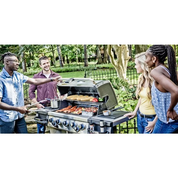 Le Regal™ S590 Pro IR dispose d’un espace de cuisson total de 875 pouces carrés comprenant un support de réchauffement revêtu de porcelaine, des grilles de cuisson en acier inoxydable de 9 mm, un système de cuisson flav-R-Wave™ en acier inoxydable, 5 brûleurs Dual-tube™ en acier inoxydable, côté acier inoxydable d’étagères, de boutons de commande éclairés et d’une base de meuble fermée. Le brûleur latéral infrarouge de puissance est doté d’un solide grille de cuisson en acier inoxydable de 9 mm et d’un corps en aluminium.Boîte de cuisson à double paroi en acier inoxydable avec embouts en fonte d’aluminium pour une rétention de chaleur et une durablité supérieuresGrilles de cuisson en acier inoxydable massif de 9mm pour une rétention de chaleur et une longévité supérieuresLe système de brûleur Dual-tube™ est conçu pour fournir une câblo de chaleur uniforme tout au long de la surface de cuisson.Le système Flav-R-Wave ™ en acier inoxydable couvre l’ensemble de la boîte de cuisson, distribue la chaleur, capte et vaporise les gouttes et en crée un pour le goût distinctif du barbecueLa technologie infrarouge de brûleur latéral permet un brûissage rapide et efficaceSystème d’allumage électronique Sure-Lite™Armoire en acier rigide avec portes en acier inoxydablebouton de commande s’allumeLinear-Flow™ avec 180 ° Sensi-Touch™ pour vous donner un contrôle de la chaleur infini