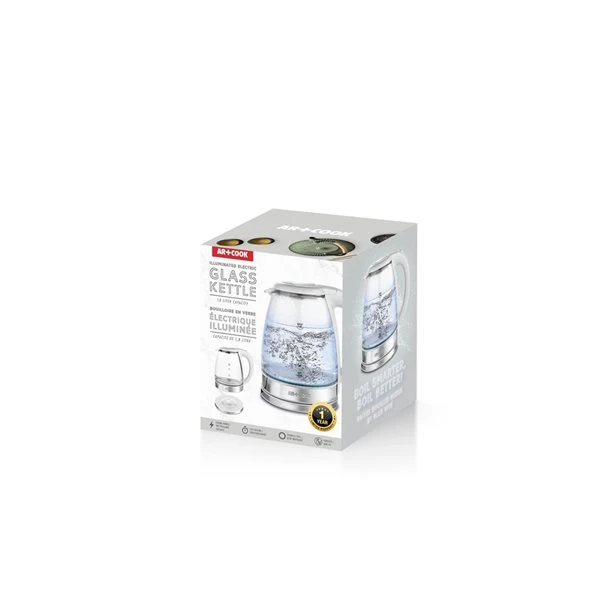 La bouilloire en verre d’Art and Cook fait bouillir l’eau plus rapidement que le micro-ondes et est plus sécuritaire que la cuisinière. Cette bouilloire en verre étincelant élégante et mince aura fière allure avec n’importe quel décor. Cette bouilloire fait bouillir jusqu’à 1,8 L d’eau pour faire du thé, du chocolat chaud, des flocons d’avoine, des ramens, des nouilles, de la soupe et plus encore. La bouilloire chauffe sur une base pivotante à 360* pour une efficacité maximale et un look élégant. Il est également équipé d’une fonction d’arrêt automatique pour empêcher la bouilloire de bouillir à sec, vous n’aurez donc jamais à vous soucier d’oublier de vérifier si elle est éteinte.Ébullition ultrarapidePuissance de 1000 wattsSans filAcier inoxydableGarantie limitée d’un an