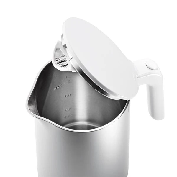 Les appareils de cuisine ZWILLING Enfinigy combinent un design contemporain et une ingénierie allemande pour des appareils fonctionnels qui complètent toute cuisine moderne. Cette bouilloire numérique présente une conception à double paroi pour un extérieur froid au toucher.Capacité totale de 1,5 L (6 tasses)La cuve double paroi garde votre eau bien au chaud plus longtemps et reste froide au toucherIntérieur lisse avec élément chauffant dissimulé pour un nettoyage facile et sans résidusUne ouverture à 70 ° empêche le contact direct avec la vapeur chaudeDispositif de sécurité anti-ébullition à sec et surchauffe avec arrêt automatiqueCouvercle avec fonction d’ouverture en douceur à bouton-poussoirFiltre à chaux partiellement en acier inoxydable pour un meilleur goût et moins de dépôts de calcaire dans le thé et le caféGarantie limitée de 5 ans contre les défauts de matériaux et de fabricationBase amovible à 360 ° avec rangement de cordon intégré