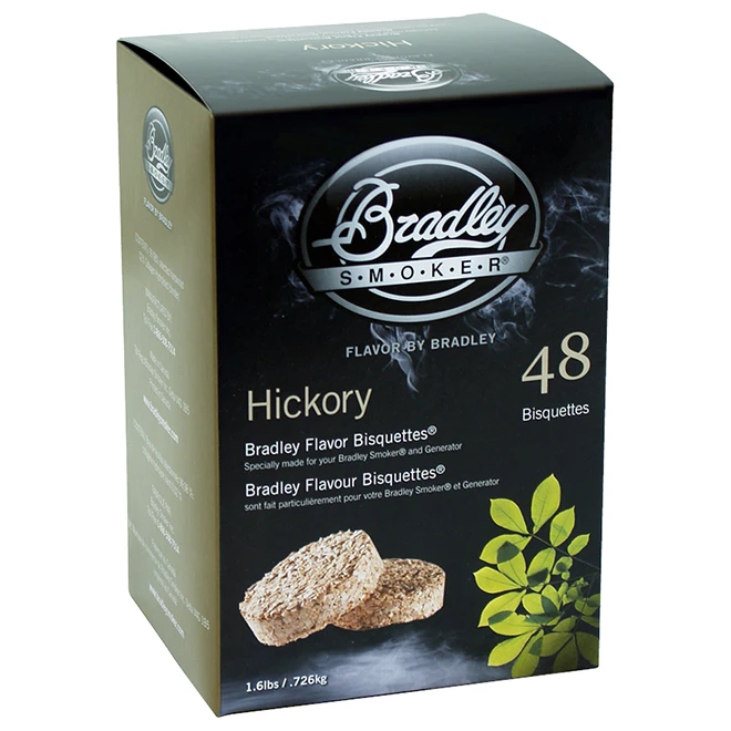 Les briquettes pour fumage Bradley sont conçues pour être utilisées dans les fumoirs Bradley afin de créer la fumée la plus propre et la plus pure possible en donnant aux aliments la meilleure des saveurs. Elles ne contiennent aucun colorant, aucun arôme ajouté, ni aucun autre additif; elles sont faites de 99,98 % de bois naturel biologique et de 0,02 % de collagène. Elles peuvent aussi être utilisées avec un barbecue conventionnel pour donner une saveur fumée à vos aliments. Aucun besoin de les mouiller, donc moins de gâchis. Paquet de 48 permettant 16 heures de fumage (20 minutes par briquette). Saveur de noyer. Garantie limitée d’un (1) an. Le noyer produit une saveur fumée forte et consistanteSe marie bien avec le boeuf, le porc et le gibier, mais aussi avec la volaille, la sauvagine, les noix et les fromagesLe bois de noyer produit une fumée forte et intensePaquet de 48 fournissant 16 heures de fumée (20 minutes par bisquette)Peut également être utilisé sur n’importe quel gril pour créer une saveur fumée pour vos aliments – pas besoin de mouiller, pas de gâchis, pas de tracas