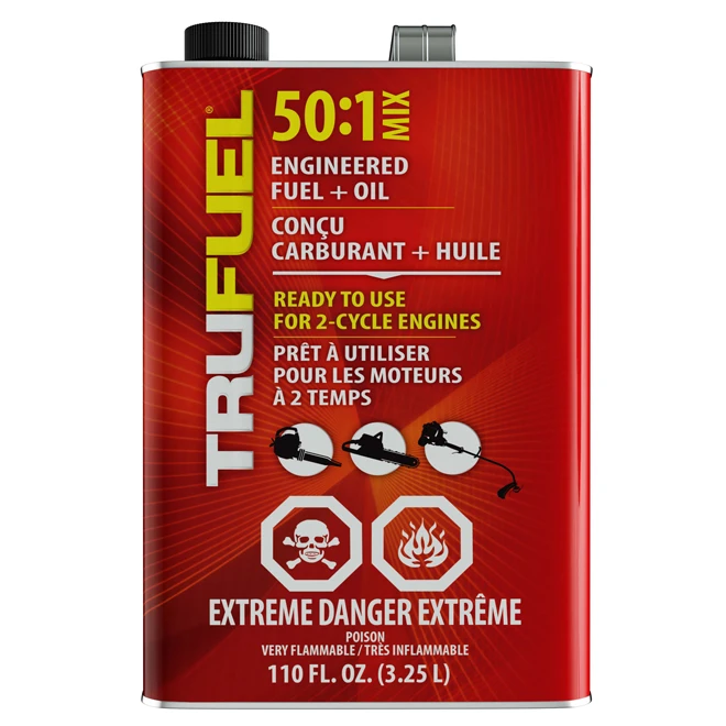 Ce carburant prémélangé pour petits moteurs à 2 temps de Trufuel a un ratio de 50 pour 1, ne contient aucun éthanol et protégera votre scie à chaîne ou votre taille-bordures durant les périodes hors-saison. L’essence se conserve parfaitement durant plus de 2 ans après l’ouverture du contenant et jusqu’à 5 ans avant l’ouverture, ce qui assure que votre appareil démarrera sans problèmes lors de sa prochaine saison d’utilisation. TRUFUEL 50: essence et huile pré-mélangées, prêtes à l’emploi pour moteurs deux tempsArrêtez de mélanger, commencez à travaillerHaute teneur en octane, sans éthanolDurée de conservation de 2 ans après ouverture, 5 ans sans ouverture