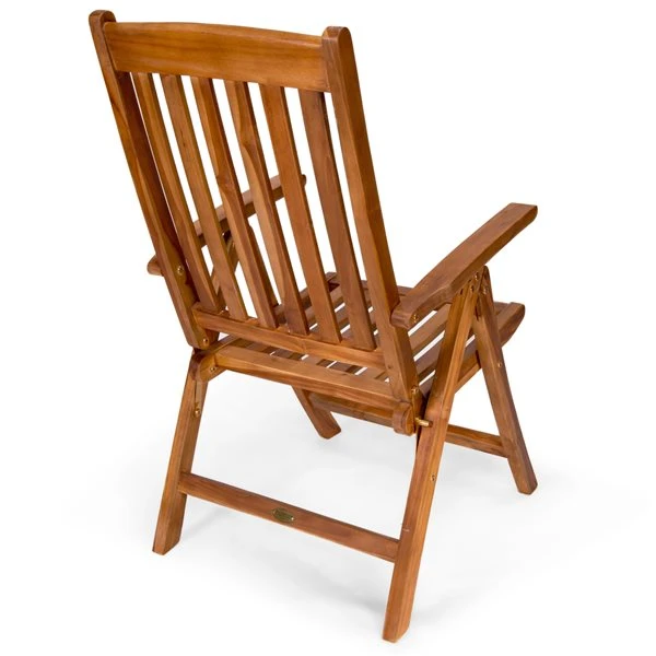 Notre chaise en teck pliante à plusieurs positions permet de régler facilement jusqu’à 5 réglages différents selon vos préférences en matière d’assise. Fabriqué à partir de teck indonésien, fini avec une huile de teck légère et muni de visserie en laiton massif, il garantit de nombreuses années d’utilisation.