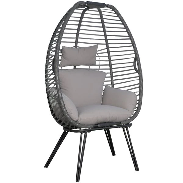 Ensemble De Mobilier Extérieur Outsunny En Osier Gris Avec Coussins Gris Inclus, 4 Pièces