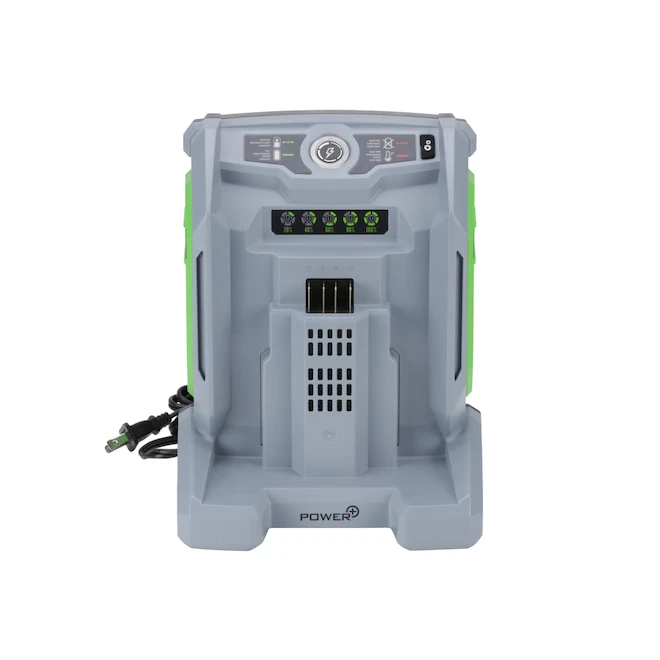 Ce chargeur rapide EGO 700 W surveille et contrôle chaque cellule de la batterie afin de maîtriser la température pour une durée de vie maximale de la batterie. Le système de refroidissement actif par ventilateur et la communication avancée avec la batterie permettent un chargement rapide sans surchauffe. La capacité de recharge rapide garantit des temps d’arrêt limités avec toute batterie EGO 56V ARC Lithium(MC). L’indicateur de charge intégré montre 5 niveaux de charge : 20 %, 40 %, 60 %, 80 % et 100 %. Le chargeur le plus rapide de l’industrieLa jauge de carburant intégrée indique 5 niveaux de charge : 20%, 40%, 60%, 80% et 100%Connectez-vous à l’application pour contrôler en temps réel l’état de charge de la batterie et recevoir des notifications lorsque la charge atteint un certain pourcentageTous les temps de charge sont approximatifs et vont de zéro à la charge complète comme suit : batterie de 2,5 Ah : 30 minutes, batterie de 5,0 Ah : 30 minutes, batterie de 7,5 Ah : 45 minutes, batterie de 10,0 Ah : 60 minutesSystème de chargement refroidi par ventilateur : empêche la batterie et le chargeur de surchaufferCharge toutes les batteries au lithium EGO POWER+ 56V ARC