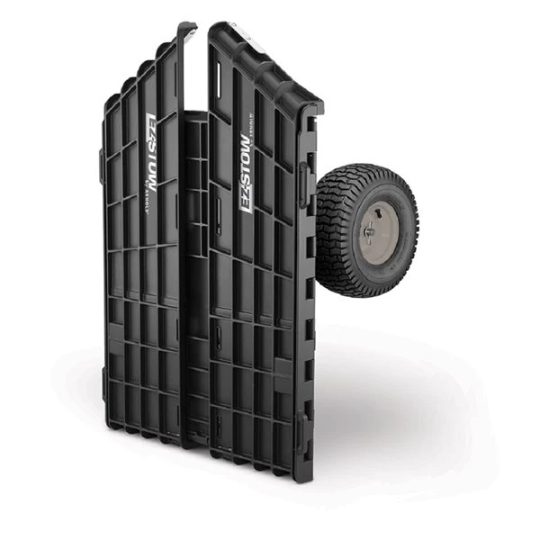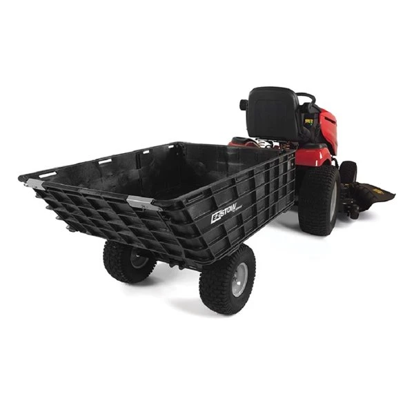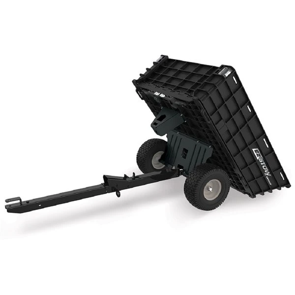 Le polyvalent chariot de remorquage pliable EZ Stow peut se transformer en plateau et se ranger à la verticale.Convient aux tracteurs de pelouse et de jardin et aux tondeuses à rayon de braquage zéro dotés d’un attelageAvec sa capacité de charge de 800 lb, il est conçu pour supporter de lourdes charges et ainsi minimiser le nombre de déplacementsGrâce aux 4 côtés rabattables, il se transforme en plateau pour accueillir des charges surdimensionnées pour offrir plus de polyvalenceIl se range à la verticale pour occuper moins d’espace comparativement aux chariots traditionnelsDéchargement sans effort : déchargez facilement la terre à jardin, le compost, le sable et le gravier