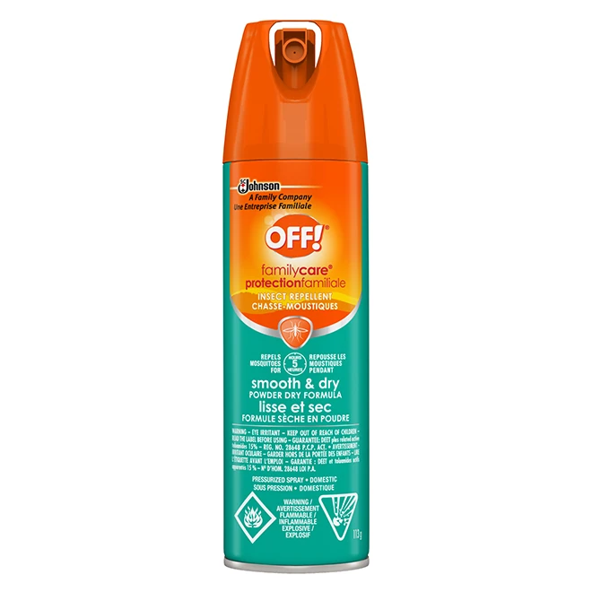 Chasse-moustiques. 113 g. Lotion soyeuse « Smooth & Dry » chasse-moustiques en aérosol. Modèle 52508 Taille : 113 GMéthode d’application : AerosolChasse-moustiqueMéthode d’application : AutreBiologique : NonNom de la série : Skintastique