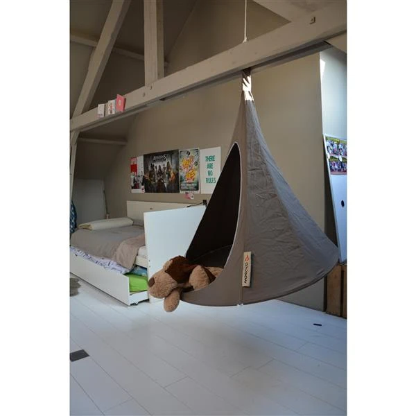 Ce cocon Bonsai Mango de Vivere vous donne la liberté de créer votre petit monde. Pour accrocher dans une chambre à coucher, votre jardin, à la plage, le cocon suspendu t’apporte la relaxation voulu! Il a été construit pour deux enfants et est disponible dans un grand choix de couleurs lumineuses et vibrantes. Inclus un sac de rangement, un système de corde en nylon. Fait à partir du polyester de 65% et du coton de 35% et un anneau en aluminium léger.