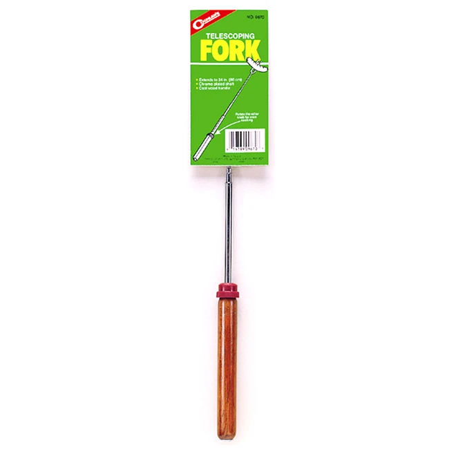 Faites griller des saucisses à hot-dog et des guimauves à la perfection sur un feu de camp ou à la maison grâce à cette fourchette de camping télescopique Coghlan. La fourchette de camping comprend une molette actionnée par le pouce qui permet une rotation stable, offrant une cuisson uniforme. Deux dents tiennent la nourriture fermement en place. Lorsqu’il est en pleine extension, la longueur totale du manche chromé est de 34 pouces (86,3 cm), permettant une distance sécuritaire de la chaleur.