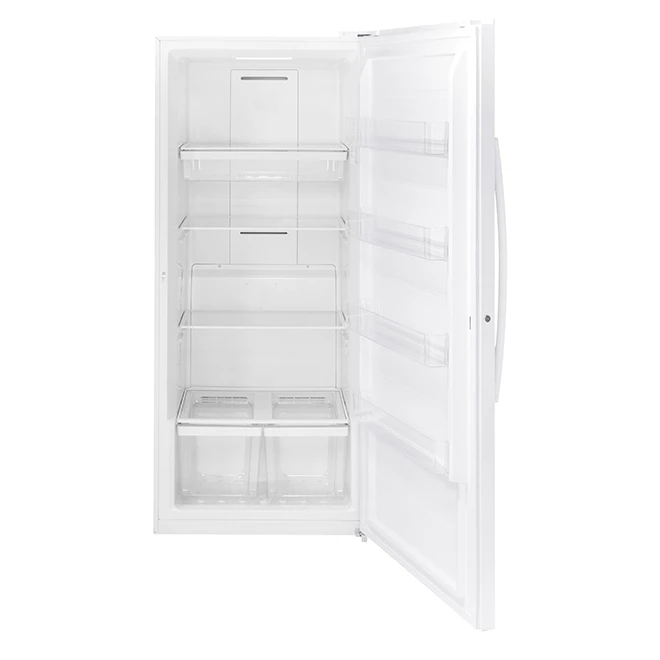 Le congélateur vertical GE d’une capacité de 21,3 pi³ offre un espace considérable ainsi qu’un accès facile à tous vos articles surgelés, idéal pour toute la famille! De plus, ce congélateur est certifié Energy Star(MD), pour des économies d’argent et d’énergie sans impact sur la performance, le style ou le confort. Le congélateur peut accueillir les articles en vrac de différents formats: 2 clayettes de congélateur réglables et 4 bacs de porte pleine largeur optimisent vos options de rangement. Il comporte une commande électronique extérieure pour régler la température sans avoir à ouvrir la porte, ainsi qu’une alarme sonore qui vous alerte en cas d’augementation anormale de la température. L’éclairage intérieur à DEL s’allume automatiquement lorsque la porte est ouverte pour une meilleure visibilité. La fonction sans givre empêche l’apparition de brûlures de congélation sur les aliments et élimine l’accumulation de glace pour un entretien facile. La serrure avec clé vous permet de protéger vos produits alimentaires précieux, de sorte que vous n’avez pas à vous soucier des enfants qui se faufilent pour une boule de crème glacée supplémentaire. Configuration adaptée aux garages, afin que vos aliments demeurent congelés peu importe la températureCertification Energy Star qui vous assure une consommation d’énergie efficaceL’éclairage intérieur à DEL illumine automatiquement l’intérieur du congélateur à l’ouverture de la porteL’alarme sonore de température prévient si la porte reste ouverte ou si la température augmenteLa commande électronique extérieure permet un accès facile et empêche la libération d’air froid en ouvrant la porteLa fonction de congélation turbo maintient l’intérieur à la température sélectionnée pour une fraîcheur optimale des alimentsLe cadenas à clé permet de protéger votre congélateur des intrusions