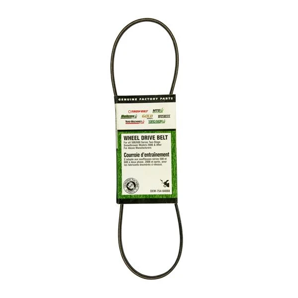 Courroie d’entraînement de roues pour souffleuses à neige MTD. Convient à la plupart des souffleuses à neige MTD à deux phases des séries 500 / 600 (modèles 2006 et plus récents). Comprend une courroie. Remplace la pièce d’origine MTD no 754-04088. Spécialement conçue pour l’entraînement des roues de souffleuses à neige. Pour appareils Troy-Bilt, MTD, MTD Gold, Yard-Man, Yard Machines, Bolens, and White Outdoor.Courroie d’entraînement de roues pour souffleuses à neige MTDConvient à la plupart des souffleuses à neige MTD à deux phases des séries 500 / 600 (2006 et années ultérieures)1/2″ x 33″Remplace MTD OE# 754-04088Spécialement conçue pour l’entraînement des roues de souffleuses à neigePour Troy-Bilt, MTD, MTD Gold, Yard-Man, Yard Machines, Bolens, Cub Cadet, Columbia, et White Outdoor