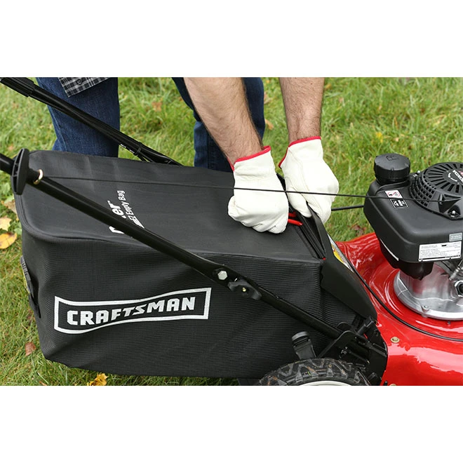 Joignez l’utile à l’agréable avec cette tondeuse à gazon de marque Craftsman(MD), qui saura faire de la tonte de votre pelouse une tâche facile et plaisante. Dotée d’un puissant moteur Honda à essence autopropulsée de 160 cc, elle fonctionne grâce à une transmission à vitesse unique. Elle vous offre trois options de coupe, soit l’éjection latérale, l’ensachage et le déchiquetage. Cette tondeuse possède deux leviers d’ajustement qui facilitent le réglage de la hauteur de coupe. Fabriqué en acier robuste de couleur rouge et noire, ce produit est couvert par une garantie limitée de 3 ans. La tondeuse autopropulsée à traction avant est idéale pour les grandes propriétés ou les terrains modérément vallonnésLe fiable moteur Honda 160 cm³ à arbre à cames en tête est facile à démarrer au moyen du volet d’air automatiqueLe sac à herbe arrière bloque la poussière et protège l’opérateur dans les conditions les plus sèchesPoignée ergonomique à 3 positions qui vous conviendra peu importe votre tailleLes roues arrière hautes permettent à la tondeuse de rouler plus facilement sur les terrains irréguliersL’orifice de lavage du plateau permet de nettoyer le dessous du plateau de coupe en toute simplicité, à l’aide d’un tuyau d’arrosageLa garantie limitée de 3 ans est soutenue par notre centre d’appel canadien et un réseau de service national