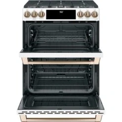 Cuisinière Biénergie 30 Po Encastrée à Deux Fours Café, Friteuse à Air Sans Préchauffage, Blanc Mat