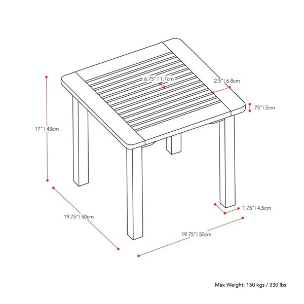 | Dimensions de la table d'appoint (L. x l. x h.) | S.O. |