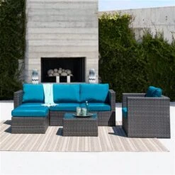 Ensemble Modulaire Brisbane Par CorLiving à Cadre En Métal Avec Coussins Bleus, 6 Pièces