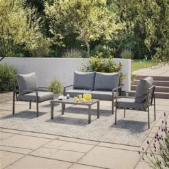 Ensemble De Mobilier Extérieur Eden Par CorLiving à Cadre En Métal Avec Coussins Gris, 4 Pièces