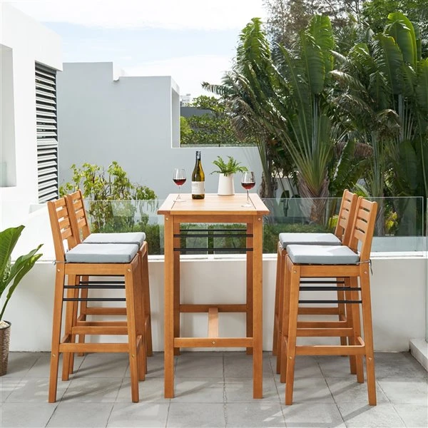 Transformez toute soirée en moment inoubliable en vous réunissant autour de cet ensemble de salle à manger 5 morceaux Gloucester. Fabriqué à partir de bois dur d’eucalyptus massif, cet ensemble de salle à manger à hauteur de bar en bois naturel est une option parfaite pour résister aux intempéries pour votre espace de vie extérieur. La structure aux lignes épurées et robuste s’adapte à tous les styles de patio, du traditionnel au contemporain.Surface de table et dossier de chaise à lattes, bases en métal soutenant les pattes pour plus de durabilitéFinition résistante aux intempéries, pattes robustesLa structure en eucalyptus est bonne contre la pourriture, la moisissure et les termitesFini en bois naturelCouleur bois de chêne doréMontage simple et rapideQualités de protection : moisissures, champignons, termites, pourritures