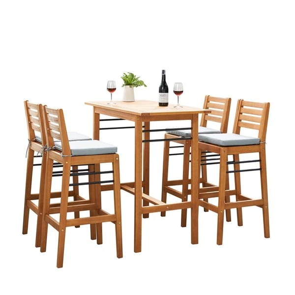 Ensemble à Dîner Extérieur De Style Bar Gloucester De Vifah, En Teck Et En Polyester, Brun Et Bleu, Ensemble De 5 Morceaux