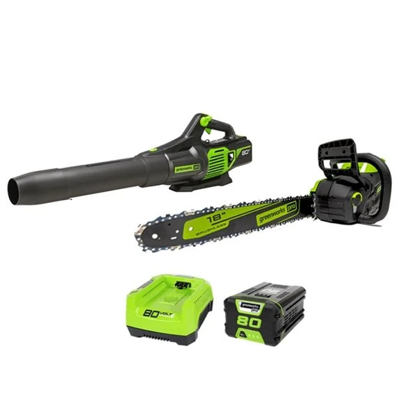 Ensemble Combiné De Souffleur à Feuilles De 80 V Et Scie à Chaîne De 18 Po Sans Fil Avec Batterie Et Chargeur