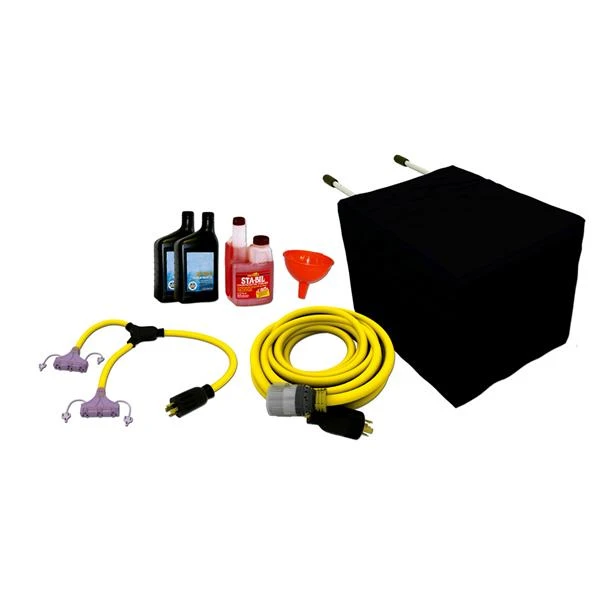 | Contenu de l'emballage | Couverture universelle de génératrice, câble d'extension de 25 pi, adaptateur de verrou tournant de 3 pi, stabilisateur de carburant, huile et filtre à l'huile |