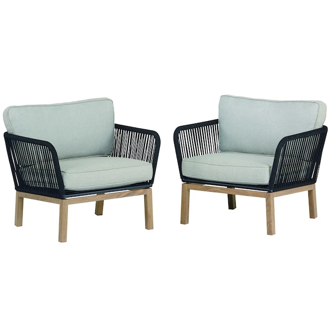 Profitez de l’extérieur avec ces chaises contemporaines. Leur structure en acier thermolaqué toute saison est agrémentée de détails en corde, et complétée par des coussins en tissu oléfine résistant à l’eau et aux UV. Matériau tout temps conçu pour l’extérieurCorde tissée à la mainEnsemble pratique de 2 unitésCadre en acier résistant à la rouille