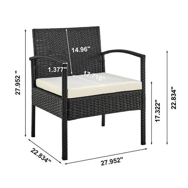 Moderne avec une touche classique, cet ensemble d’extérieur chic pour deux est aussi pratique que tendance. Parfait pour créer cette alcôve confortable ou un coin extérieur mis à jour, vous pouvez maintenant profiter d’un verre de vin et de votre livre préféré dans le confort et le style. Une table basse compacte contient l’essentiel, tandis que les chaises sont confortables avec des accoudoirs et des coussins amovibles, résistants à l’eau et faciles à nettoyer. Profitez de l’espace idéal pour profiter du moment. L’ensemble a fière allure au bord de la piscine ou sur la terrasse, donnant à la cour arrière un cran de style partout où vous décidez de l’installer.Ensemble de patio extérieur moderne de 3 pièces avec 2 fauteuils et 1 table basseCoussins amovibles avec fermeture éclair fabriqués en tissu imperméable de haute qualitéLa table comprend un dessus en verre trempé amovible de 5 mmCadre en acier enveloppé de rotin PVC parfait pour les intempéries extérieuresAssemblage requis avec le matériel inclus