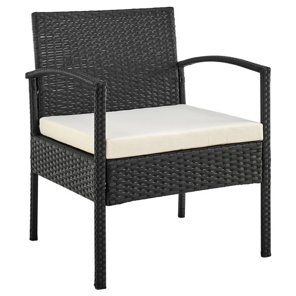 Ensemble De Mobilier Extérieur Noir Avec Cadre En Métal Noli Par Manhattan Comfort Avec Coussins Crème, 3 Mcx
