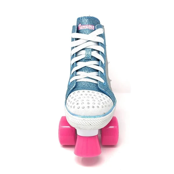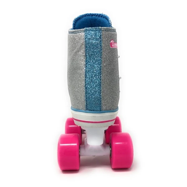 Le célèbre patin Junior Fashion de Chicago Skates vient d’être relooké. Ce patin de glisse toujours supérieur a maintenant des paillettes et des lumières ! Le Chicago Fashion Skate est doté d’une bottine montante contrôlée pour une sécurité optimale ainsi que de lacets à paillettes de haute qualité pour une protection maximale, laissant votre pied confortable et sécuritaire. Équipé de roues en uréthane de 54 mm, vous serez protégé contre l’usure normale du patinage, assurant la traction et le contrôle, tandis que les roulements de semi-précision vous permettent de rouler en douceur et rapidement. Le patin est équipé d’une botte de style patinoire à profil haut de couleur argent avec des paillettes qui soutient vos chevilles pendant que vous patinez, et d’un système de laçage à crochet qui vous permet de faire l’ajustement au fur et à mesure. Commencez à vous amuser – commencez à patiner avec Chicago Skates !Bottines à paillettes avec lacets à la modeLumières DEL à étincelles activées par le mouvementGarantie de 30 jours