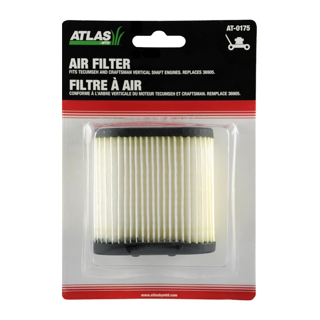 Maximiser la performance de votre tondeuse en remplaçant le filtre à air à chaque saison. Le filtre à air de marque Atlas est conforme à l’arbre verticale du moteur «Tecumseh» et remplace Tecumseh n° 36905. Convient aux moteurs à arbre vertical Tecumseh et CraftsmanUtilisé sur les moteurs Tecumseh LV, OVRM, LEV et TVSCartouche du filtre à air de remplacement qui convient aux moteurs TecumsehRemplace l’équipement original Tecumseh no 36905