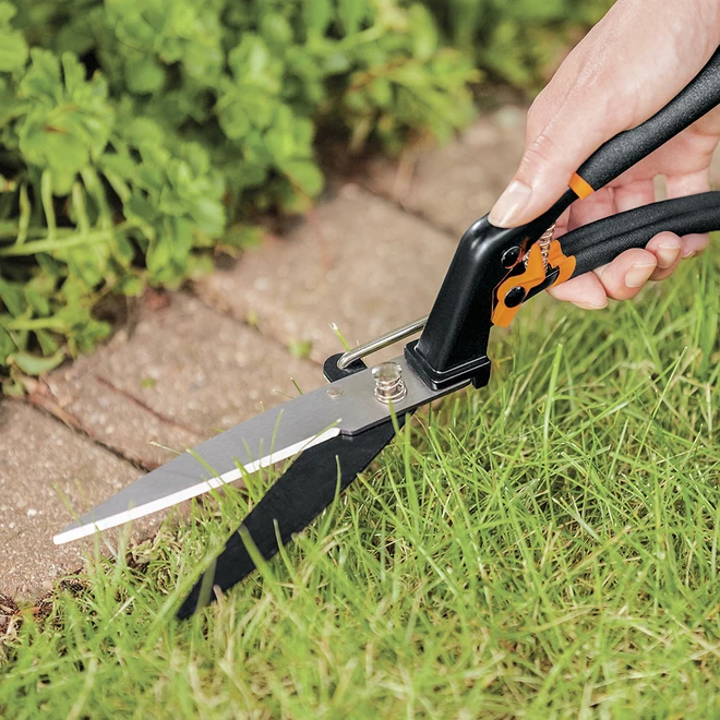 Ces cisailles à gazon Fiskars vous permettront de tailler aisément des bordures de plates-bandes, d’arbres et de trottoirs. Elles sont pourvues de lames en acier rectifié et trempé qui conservent leur tranchant afin d’offrir une coupe nette et précise. Les lames sont moulées sous pression afin d’être résistantes à long terme, et sont effilées jusqu’à leur extrémité. Les cisailles sont munies de poignées antidérapantes qui offrent confort et contrôle, et possèdent un mécanisme de verrouillage pour un transport sécuritaire. Garantie complète à vieVerrou à ouverture facile qui protège les lames pendant le transport et le stockageConstruction moulée sous pression qui améliore sa résistance et sa durabilitélames de 5-1/2 po coupées jusqu’à la pointeTaillez proprement les bordures avec les ciseaux à gazon dotés de lames en acier trempé et rectifié qui restent affûtées même en cas d’utilisation intensive