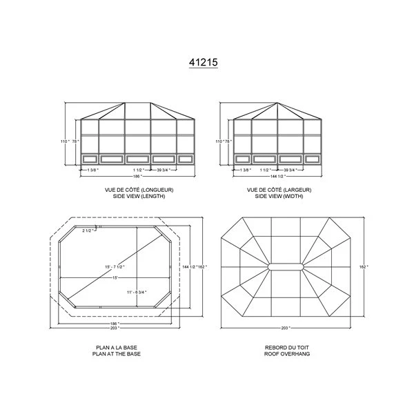 | Largeur extérieure (pi) | 15,5 |