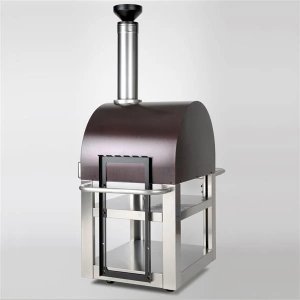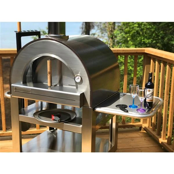Le four à pizza autoportant au bois Pronto 500 conçu en Italie, est la solution idéale pour les cuisines en plein air disposant de peu d’espace. La surface de cuisson de 24 x 20 pouces vous permet de cuisiner deux pizzas de taille personnelle à la fois. Le foyer en brique réfractaire est recouvert d’une isolation en céramique à double couche pour une excellente rétention de la chaleur et des performances de cuisson supérieures.Tablette de préparation pliable et porte-outil à four réglableFour préassemblé (assemblage requis pour le chariot)Four entièrement isolé avec tablette chauffanteChariot et tablettes en acier inoxydable de qualité 304 pour résister aux environnements extrêmes. Four en acier inoxydable de qualité 430 pour résister à des températures extrêmes4 roulettes (2 pivotantes, 2 fixes) plus des cales à roulettes.Prêt à cuisiner en 15 minutes. Température max. de 800 degrés F (427 degrés Celsius).