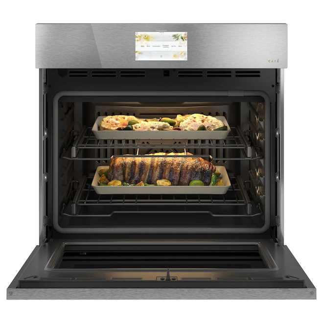 Rien de ce qui concerne votre style personnel n’est standard. Alors pourquoi vos appareils devraient-ils l’être? Créé pour ceux qui veulent refléter leur véritable style dans chaque pièce de leur maison, Café se distingue par sa conception. Soutenu par des caractéristiques exceptionnelles, chaque appareil Café vous offre la forme et la fonction dont vous rêvez. Caméra dans le four : vérifiez l’état du four de n’importe où, sans avoir à ouvrir la porte, grâce à la vidéo en direct de vos aliments sur votre télépone intelligentConnexion unique : ce modèle nécessite une connexion WiFi unique pour télécharger les caractéristiques du four et les fonctionnalités activées par logicielFinition en verre platine : les lignes angulaires et modernes et la finition en verre frappante créent une allure contemporaine et facile à nettoyer pour votre cuisineFriteuse sans préchauffage : cette friteuse sans préchauffage installée dans le four, permet de préparer des versions plus saines et plus croustillantes de vos aliments préférés en moins de tempsOuverture sans contact : il suffit d’utiliser votre voix pour ouvrir le four mural, ce qui vous permet de garder les deux mains sur les plats lourds