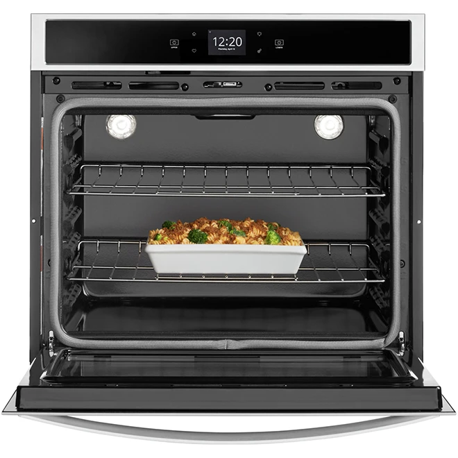 Aussi efficace qu’élégant, le four mural intelligent de Whirlpool(MC) vous simplifiera la vie. L’écran tactile offre un accès instantané aux paramètres que votre famille utilise le plus. Vous pouvez également avoir le contrôle mains libres de votre four à l’aide de la commande vocale, ce qui vous permet de faire autre chose. Puisqu’il est compatible avec les applications d’assistance vocale, vous pourrez envoyer des instructions de cuisson au four depuis votre téléphone intelligent. Obtenez un accès instantané aux paramètres que vous utilisez le plus avec un nouvel écran tactile qui apprend, adapte et suggère des préréglages personnalisés en fonction des routines de votre famille. Vous pouvez également simplifier les repas en plusieurs étapes, en utilisant votre téléphone intelligent ou votre tablette pour envoyer plusieurs instructions de cuisson au four en même temps. La température est automatiquement ajustée en fonction de la recette pour obtenir d’excellents résultats sans avoir à surveiller. Obtenez une cuisson uniforme des aliments avec un capteur qui surveille la température du four et règle les éléments de cuisson. Utilisez la technologie Frozen Bake pour cuire des aliments surgelés avec des réglages préprogrammés qui ajustent automatiquement les temps de cuisson. Appareil intelligent : soignez plus intelligemment avec des fonctions connectées qui vous permettent d’envoyer des instructions de cuisson au four depuis votre téléphone intelligent, de commander votre cuisine vocalement à l’aide d’un appareil compatible avec la voix ou de sauter le préchauffageÉcran tactile : accédez instantanément aux paramètres que vous utilisez le plus grâce à un écran tactile qui apprend, s’adapte et suggère des préréglages personnalisés en fonction des habitudes de votre familleTechnologie de cuisson congelée : évitez le préchauffage et cuisez vos plats préférés congelés, comme la pizza, en moins d’étapes grâce aux réglages préprogrammés qui ajustent automatiquement le temps de cuissonCuisson à étapes multiples : utilisez votre téléphone intelligent ou votre tablette pour envoyer des directives de cuisson au fourOption de nettoyage à la vapeur : nettoyez les dégâts légers de tous les jours en utilisant uniquement la chaleur et 1 1/4 tasse d’eau. Aucun produit chimique ou nettoyant agressif n’est nécessaireTechnologie Scan-to-connect : pas besoin d’être un expert en technologie pour connecter votre nouvel appareil, il suffit d’ouvrir l’application Whirlpool(MD), d’ajouter votre appareil et de suivre l’expérience guidée pour être rapidement opérationnelDémarrage à distance : lorsqu’il est réglé sur l’activation à distance, utilisez votre téléphone intelligent ou votre tablette pour allumer à distance votre four afin qu’il soit chauffé et prêt à préparer des repas lorsque vous arrivez à la maisonRéglage de maintien au chaud : empêchez les plats de refroidir grâce à ce réglage qui fournit une faible chaleur au four, réglez-le à distance par l’entremise de votre application Whirlpool(MD) ou manuellement sur le four pour que les aliments restent chauds et prêts à être servis, que vous soyez à la maison ou en déplacementMode fête : commencez à vous préparer pour vos invités depuis votre téléphone intelligent ou votre tablette avec le mode fête qui active automatiquement le réglage de maintien au chaud pour que les plats restent prêts à être servis