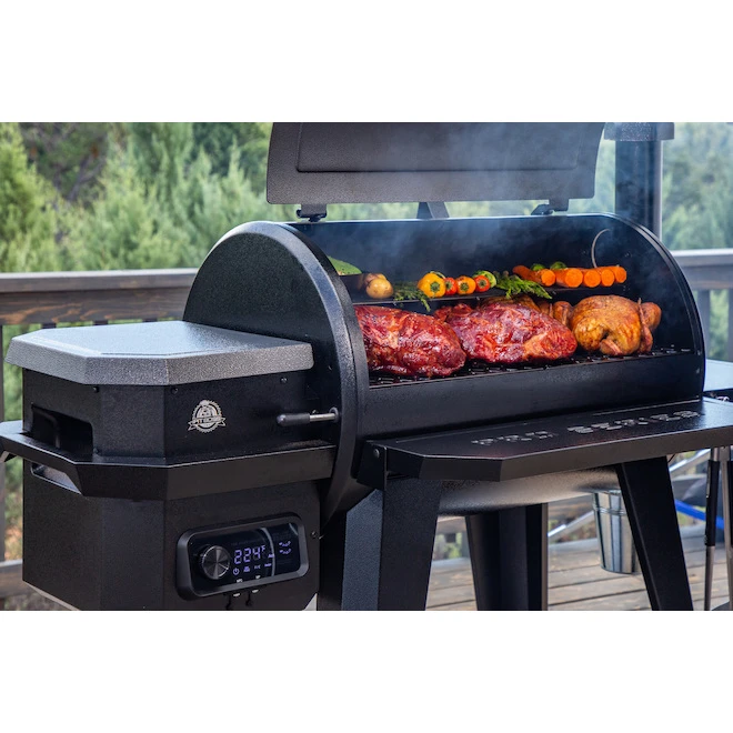 Le Pit Boss Pro de la série 850 est une excellente façon d’obtenir des résultats de qualité professionnelle. Ce barbecue aux granules possède un panneau de commandes numérique PID et une technologie avancée pour des températures uniformes ainsi qu’une compatibilité Wi-Fi et Bluetooth. Téléchargez l’application Pit Boss Smoke IT afin de maximiser votre expérience devant le gril en contrôlant les réglages de températures, en surveillant les sondes à viandes et en obtenant les notifications sur les conditions de cuisson. Le PB850PS2 est très polyvalent et vous permettra de saisir, fumer, rôtir, griller, braiser et cuire vos viandes à la perfection. Il procure des températures entre 180 °F et 500 °F, mais il peut atteindre 1000 °F à l’aide d’un gril muni d’une flamme directe, ce qui est parfait pour saisir! Il est également doté d’une surface de cuisson de 850 pouces carrés et des grilles de cuisson amovibles en recouvrent les deux tiers. Cet appareil puissant offre des résultats imbattables en utilisant seulement du bois dur naturel. Compatibilité Bluetooth et Wi-FiCapacité de 20 lbSurface de cuisson de 850 pouces carrésGrilles de cuisson robustes en fonte recouverte de porcelaineFabrication en acier robustePlage de température de 180°F à 500°FÉtagère latérale en acier avec crochets à outils intégrésTablette avant en acier solide qui se replie vers le haut ou vers le basSystème de gestion des graisses facile à nettoyer