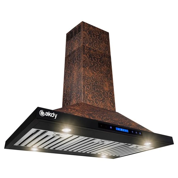 La perfection à son meilleur avec une surface en acier inoxydable parfaitement lisse et relief en cuivre. Un bord plat et arrondi contourne la hotte de cuisine, lui conférant une apparence luxueuse et élégante. La hotte montage en îlot AKDY RH0402 mesure 36 pouces et dispose d’un élégant panneau de commande tactile. Plusieurs options peuvent être utilisées via le panneau de commande tactile, notamment une minuterie de 15 minutes, une horloge de 12 heures et un ventilateur à 4 vitesses pouvant atteindre 343 CFM. 3 filtres à chicane empêchent les particules d’huile indésirables de laisser des odeurs et gardent votre cuisine fraîche. Cette hotte est équipée d’un moteur de 194 watts. Les filtres peuvent être facilement nettoyés dans votre lave-vaisselle et peuvent être remis en place sans problème.La hotte de cuisine à montage en îlot comprend une cheminée décorative compatible avec les plafonds de 8 à 8,5 piDes commandes tactiles avancées et élégantes permettent de faire fonctionner facilement les lumières et de sélectionner les 4 vitesses de ventilateur pour toujours avoir le bon niveau d’aspirationL’échappement vertical supérieur se raccorde aux conduits existants à l’aide d’un tuyau inclus3 filtres à chicane collectent les graisses et les huiles extraites de votre cuisinière et sont lavables en machine4 lumières DEL blanches intégrées de 1,5 W éclairent vos casseroles et poêles à tout moment de la journéeLe moteur de 343 CFM élimine sans effort la fumée, les odeurs et la graisse de votre cuisine