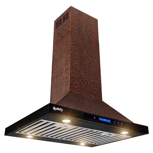 La perfection à son meilleur avec une surface en acier inoxydable parfaitement lisse et cuivre repoussé. Un bord plat et arrondi contourne la hotte de cuisine, lui conférant une apparence luxueuse et élégante. La hotte montage en îlot AKDY RH0379 mesure 30 pouces et dispose d’un élégant panneau de commande tactile. Plusieurs options peuvent être utilisées via le panneau de commande tactile, notamment une minuterie de 15 minutes, une horloge de 12 heures et un ventilateur à 4 vitesses pouvant atteindre 343 CFM. 2 filtres à chicane empêchent les particules d’huile indésirables de laisser des odeurs et gardent votre cuisine fraîche. Cette hotte est équipée d’un moteur de 194 watts. Les filtres peuvent être facilement nettoyés dans votre lave-vaisselle et peuvent être remis en place sans problème.La hotte de cuisine à montage en îlot comprend une cheminée décorative compatible avec les plafonds de 8 à 8,5 piDes commandes tactiles avancées et élégantes permettent de faire fonctionner facilement les lumières et de sélectionner les 4 vitesses de ventilateur pour toujours avoir le bon niveau d’aspirationL’échappement vertical supérieur se raccorde aux conduits existants à l’aide d’un tuyau inclus2 filtres à chicane collectent les graisses et les huiles extraites de votre cuisinière et sont lavables en machine4 lumières DEL blanches intégrées de 1,5 W éclairent vos casseroles et poêles à tout moment de la journéeLe moteur de 343 CFM élimine sans effort la fumée, les odeurs et la graisse de votre cuisine