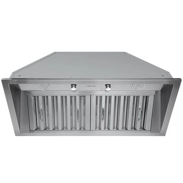 Combinant esthétique et fonctionnalité, cette superbe hotte de cuisine encastrable en acier inoxydable de qualité supérieure est munie d’un puissant moteur de 600 pi3/min et de filtres à chicane inclinés de qualité commerciale, pour une cuisine propre et purifiée. Elle propose également des lumières DEL de longue durée et des commandes rotatives à quatre vitesses des plus conviviales.Hotte de cuisine encastrable en acier inoxydable 430 de qualité supérieureMoteur d’une capacité de 600 pi3/minute, testé de façon indépendanteCommandes rotatives à quatre vitesses, plus conviviales que les boutons-pressoirsAmpoules Pure Lights™ conçues par Ancona : puissantes et écoénergétiques; elles affichent une durée de vie jusqu’à 10 fois plus longue que les ampoules traditionnellesFiltres à chicane inclinés Clean Filter™ en acier inoxydable de qualité commerciale; permettent de capter encore plus de graisses (lavable au lave-vaisselle)Évacuation vers le haut; ventilation extérieure seulementCe modèle ne peut être converti en unité de recirculation intérieure