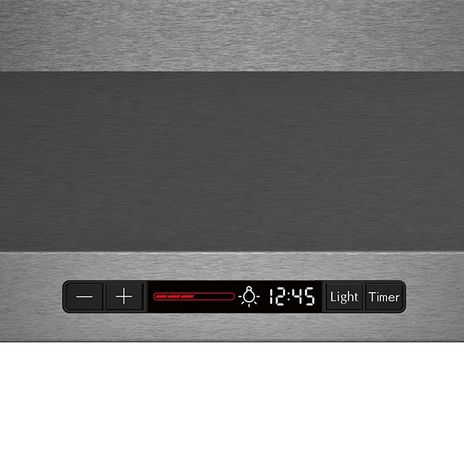 Bosch(MD) vous propose une hotte cheminée pyramidale qui créera un point d’intérêt remarquable dans votre cuisine. La hotte de 30 po pouces présente une finition sophistiquée et moderne en acier inoxydable noir résistant aux traces de doigts et aux rayures. Cet appareil offre une grande puissance d’aspiration de 600 pi²/min avec 4 vitesses de ventilation et 4 niveaux de puissance. La hotte est pourvue d’un ventilateur silencieux de 4,6 sones à basse vitesse et à 9.9 sones à vitesse élevée et d’éclairage halogène à gradateur produisant une luminosité parfaite pendant la cuisson qui peut, de plus, être utilisé sans la ventilation pour diverses tâches. Ce produit est couvert par une garantie limitée de 1 an. La hotte cheminée murale ajoute du style et de la sophistication à la cuisine et vous donne une plus grande liberté dans l’aménagement de votre cuisineL’écran tactile ACL offre des commandes faciles à utiliser et à lire4 vitesses permettent de choisir le niveau de puissance qui convient à votre style de cuisson. La hotte se met automatiquement en marche à haute vitesse si elle détecte une chaleur excessiveLe moteur soufflant intégré de 600 PCM est inclus à l’achatLes filtres à mailles lavables au lave-vaisselle facilitent le nettoyage et l’entretien. L’écran ACL s’allume pour rappeler de vérifier l’entretien des filtresL’éclairage halogène à gradation permet d’éclairer parfaitement la cuisineConduit rond de 8 pouces à l’évacuationL’acier inoxydable noir protège contre les rayures et les traces de doigtsLe nécessaire de recirculation en option est équipé de filtres à charbon pour extraire les odeurs